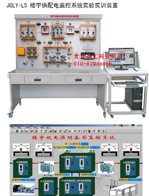 JGLY-L5 樓宇供配電監(jiān)控系統(tǒng)實(shí)驗(yàn)實(shí)訓(xùn)裝置 ( 1 )裝置組成: 樓宇供配電監(jiān)控系統(tǒng)實(shí)驗(yàn)實(shí)訓(xùn)裝置 ,控制部分全部采用實(shí)物,控制對(duì)象采用仿真模型,整個(gè)實(shí)訓(xùn)裝置主要由 DDC 控制器、低壓開(kāi)關(guān)柜、電壓變送器、電流變送器、功率變送器、功率因數(shù)變送器、仿真模型具、多種低壓電器、組態(tài)軟件、配置軟件、控制軟件、專用管理電腦等組成。 ( 2 )系統(tǒng)實(shí)訓(xùn)功能: 能進(jìn)行各種供配電系統(tǒng)模擬操作演示、 DDC 控制器的操作與編程,雙電源明備用監(jiān)控系統(tǒng)、雙電源暗備用監(jiān)控系統(tǒng)、低壓側(cè)供配電監(jiān)控系統(tǒng)、環(huán)網(wǎng)供電監(jiān)控系統(tǒng)等實(shí)訓(xùn),監(jiān)測(cè)變壓器超溫報(bào)警、超溫預(yù)報(bào)警,監(jiān)測(cè)變壓器的電壓、設(shè)備啟停狀態(tài),故障狀態(tài),系統(tǒng)軟件的組態(tài)、配置與控制,線路的設(shè)計(jì)與連接、故障的設(shè)置、判斷及排除等實(shí)驗(yàn)和實(shí)訓(xùn),并可與樓宇自控系列中其它設(shè)備聯(lián)網(wǎng)進(jìn)行各種綜合實(shí)訓(xùn)。 ( 3 )系統(tǒng)技術(shù)指示: a 、 工作電壓:?jiǎn)蜗嗳 220V±5% 50Hz b 、整機(jī)容量:< 300W c 、外形尺寸: 1500mm×700mm×1800mm d 、安全保護(hù):具有漏電自動(dòng)保護(hù)裝置 e 、故障設(shè)置:具有故障設(shè)置系統(tǒng) ( 4 )可以做的實(shí)訓(xùn)項(xiàng)目: 實(shí)訓(xùn)項(xiàng)目一: DDC 現(xiàn)場(chǎng)控制器安裝操作 實(shí)訓(xùn)項(xiàng)目二: DDC 現(xiàn)場(chǎng)控制器設(shè)置操作 實(shí)訓(xùn)項(xiàng)目三:雙電源明備用監(jiān)控系統(tǒng)控制 實(shí)訓(xùn)項(xiàng)目四:雙電源暗備用監(jiān)控系統(tǒng)控制 實(shí)訓(xùn)項(xiàng)目五:低壓側(cè)供配電監(jiān)控系統(tǒng)控制 實(shí)訓(xùn)項(xiàng)目六:環(huán)網(wǎng)供電監(jiān)控系統(tǒng)控制 實(shí)訓(xùn)項(xiàng)目七:線路故障的判斷與處理 實(shí)訓(xùn)項(xiàng)目八:設(shè)備故障的判斷與處理 實(shí)訓(xùn)項(xiàng)目九:設(shè)計(jì)并安裝一個(gè)簡(jiǎn)易應(yīng)用系統(tǒng)