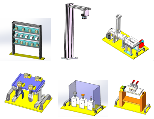 1 、≧ 1800mm × 1200mm × 800mm 工業(yè)鋁型材搭建,鈑金表面噴塑處理 , 帶腳輪、腳杯。