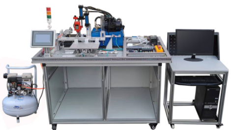機(jī)電液氣一體化實(shí)訓(xùn)平臺(tái)臺(tái)架為鋁合金型材結(jié)構(gòu),在上面可安裝上料單元、間歇式傳送及夾緊單元、沖壓?jiǎn)卧、鉆孔單元和分揀單元,并配有 PLC 主機(jī)、變頻器、觸摸屏、傳感器、三相異步交流電機(jī)、交流減速電機(jī)、直流電機(jī)、液壓機(jī)系統(tǒng)、鉆機(jī)及其液壓進(jìn)給系統(tǒng)、氣壓傳動(dòng)系統(tǒng)等,構(gòu)成一個(gè)典型的機(jī)電氣液綜合應(yīng)用系統(tǒng)?梢赃M(jìn)行典型機(jī)電氣液一體化系統(tǒng)的安裝、液壓氣動(dòng)管路安裝、電氣控制線(xiàn)路布線(xiàn)、觸摸屏與 PLC 編程及調(diào)試、整機(jī)調(diào)及運(yùn)行等技能訓(xùn)練,從而使學(xué)生掌握機(jī)電氣液的相關(guān)知識(shí)和技能。