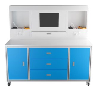 工作臺(tái): 桌身采用優(yōu)質(zhì)鋁型材做骨架,整機(jī)既堅(jiān)固耐用,美觀大方。桌面采用 25mm 厚高密度纖維板,外貼防火板, PVC 截面封邊,桌面具有耐磨、耐熱、耐污、耐火、耐菌、防霉、抗靜電及易清潔等特點(diǎn)。工作臺(tái)設(shè)有防靜電配套裝置,桌面上方有實(shí)訓(xùn)屏、高檔條形 LED 照明。工作臺(tái)下裝帶剎車的萬向輪,可以隨意固定和移動(dòng),設(shè)計(jì)有抽屜,抽屜內(nèi)部使用分隔條分隔成各種大小不同空間,實(shí)訓(xùn)電路板、元器件、工具、耗材均可放在隔間內(nèi),拉開抽屜,各種電子元件分類整齊、一目了然。