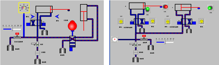 四、組態(tài)仿真畫(huà)面演示控制的氣動(dòng)控制實(shí)訓(xùn)項(xiàng)目