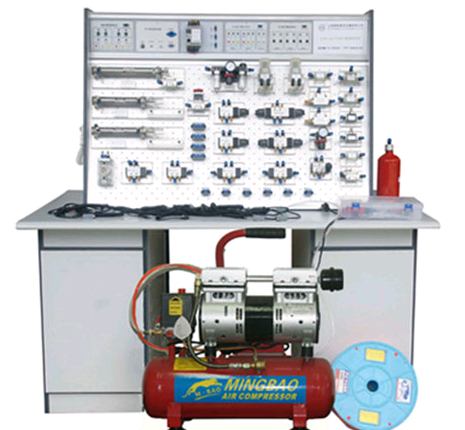 氣動(dòng)-PLC控制實(shí)驗(yàn)臺(tái)主要由實(shí)驗(yàn)桌及實(shí)驗(yàn)支架、氣動(dòng)元器件、電氣控制器件等組成,實(shí)驗(yàn)桌及實(shí)驗(yàn)支架采用“二合一”設(shè)計(jì)結(jié)構(gòu),即一套實(shí)驗(yàn)設(shè)備可供兩組學(xué)生同時(shí)進(jìn)行實(shí)驗(yàn),優(yōu)化共享資源,提高產(chǎn)品的性?xún)r(jià)比。氣動(dòng)元器件配備:空氣壓縮機(jī),空氣過(guò)濾、減壓、油霧器三聯(lián)件,減壓閥,手動(dòng)換向閥,電磁換向閥,氣控?fù)Q向閥,行程閥,單向閥,節(jié)流閥、單向節(jié)流閥、快速排氣閥,或門(mén)型梭閥,單作用氣缸,雙作用氣缸、旋轉(zhuǎn)氣缸等。電氣控制器件:直流24V(3A)電源單元,PLC可編程序控制器(日本松下FP1--C14),PLC電氣控制輸入單元, PLC電氣控制輸出單元,繼電器控制單元,行程開(kāi)關(guān)(常閉、常開(kāi))。